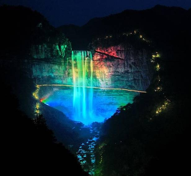 游客还可以参加全长3.5公里,上下落差达150余米的户外漂流项目,与朋友、爱侣和家人一起,体验一把“为爱尖叫”的惊险和刺激。到了晚上,游客也可到望乡台观赏我国首个可供夜间观赏的大型瀑布景观——“七彩瀑布”。