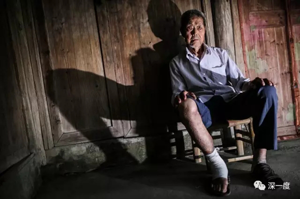 兰昌礼,91岁,现居丽水云和县石塘镇。1942年,16岁的兰昌礼右脚开始发红,发痒,抓破后溃烂成为“烂脚”,同村还有十几位“烂脚”病人,至今仅剩三位。2015年1月,兰昌礼赴上海第九人民医院免费治疗康复。但回家后没保护好,右脚病情复发,后再赴上海治疗后痊愈。由于担心腿部碰伤致病情复发,他现在用纱布包住患处,平时可四处走动,还可以下地种菜。