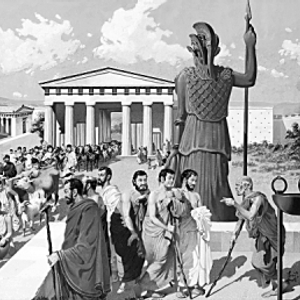 雅典城邦的中心节日也与政治有关,泛雅典娜节、城市酒神节、统一节和丰收节等节日为城邦发展提供了历史认同和神圣解释。雅典民主政治的发展道路与宗教有着密切关系,梭伦改革涉及对宗教礼仪制度的改革,对葬礼的规模、女性的举止等都做了细致规定。僭主庇西忒拉图统治时期,创办泛雅典娜节、城市酒神节等大型节日,为厄琉西斯秘仪大兴土木,提升了雅典城邦的凝聚力。克里斯提尼建立了10个部落之间的酒神颂歌比赛,消融了派系斗争,提升的也是城邦的凝聚力和向心力。得益于民主制度的推动,厄琉西斯秘仪、狄奥尼索斯崇拜等原来不甚引人注目的小崇拜发展成为城邦庆祝的大节日,反过来也推动了雅典民主政治的发展。从某种程度上说,雅典城邦的宗教礼仪制度清晰地表达了民主政治的意识形态。