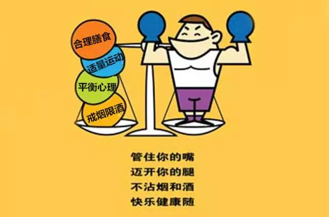 ③ “多运动,好心情”,快走、慢跑常坚持,多动少坐健体魄,乐观、豁达平形态,延寿命;