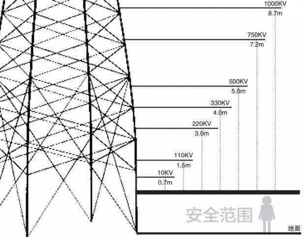 ↑图/视觉中国 生活中人们可能以为:只要不碰电线,就不会触电。实际上只要进入高压线的禁区,高压线就会对物体或人身进行放电。因此,电压等级越高,所需安全距离的范围就越大。