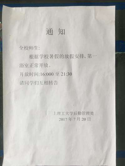 ↑上海理工大学第一浴室外的公告。