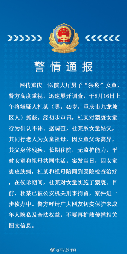 熟人作案!重庆一医院男子猥亵女童案:涉事者系姑父,已被刑拘!