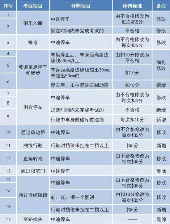 道路驾驶技能考试操作和评判主要修改一览