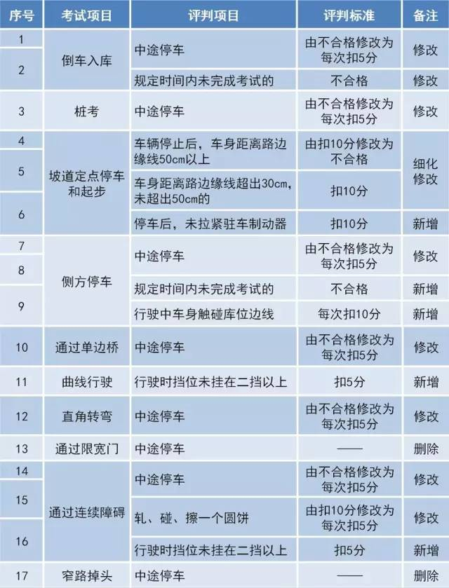 根据公安部、交通运输部《机动车驾驶培训教学与考试大纲》要求,调整相关考试内容: