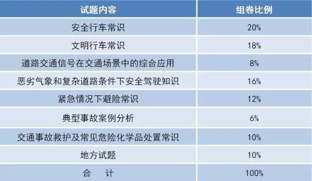 ◆ 调整考试内容比例,提高道路交通安全法律法规、安全文明驾驶知识考题比例,单列文明行车常识、典型事故案例等内容;