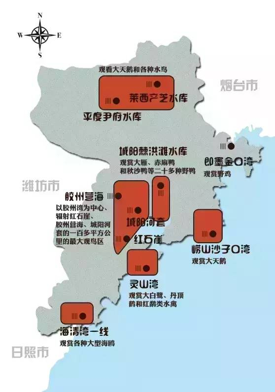 在青岛地区,初冬越冬候鸟出现区域包括沿海湿地、内陆河流沼泽湿地、水库池塘等湖泊湿地。