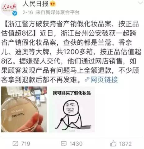 大家在购买化妆品时一定要选择正规渠道!