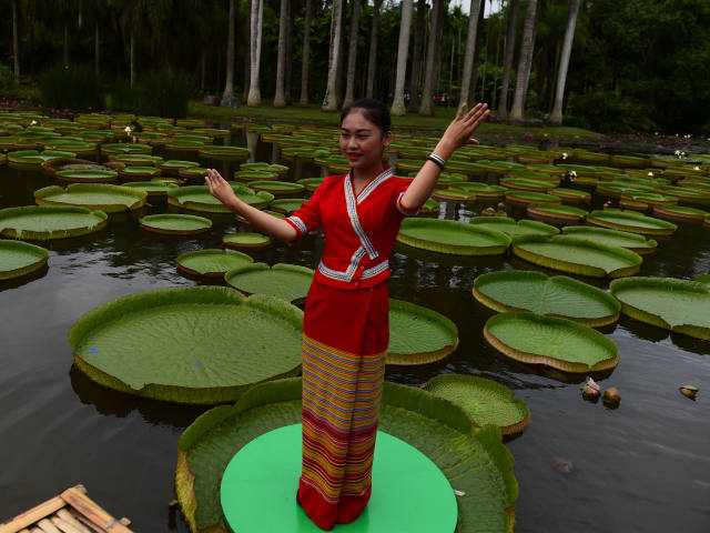 中科院西双版纳热带植物园拍摄的王莲。新华社记者 岳冉冉 摄