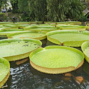 这种奇妙的植物叫做王莲——莲之王者。它拥有全世界水生植物中最大的叶片。每年七八月正是中科院西双版纳热带植物园的“赏莲月”活动期。蓝天绿池,椰风湖韵,王莲霸气地占据着整片池塘,像一艘艘小船,停靠在码头,等待游客到来。