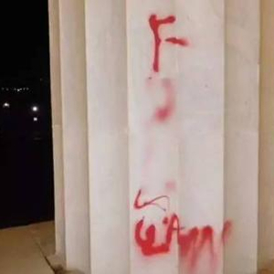 管理局在一份声明中说,美国东部时间15日凌晨4时30分左右,在林肯纪念堂一根石柱上发现被人用红色和银色颜料喷涂,红色涂鸦看上去像是一句咒骂法律的脏话,银色涂鸦难以辨认。