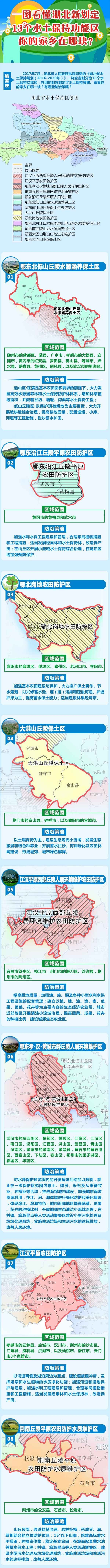 2017年7月,湖北省人民政府批复同意的《湖北省水土保持规划(2016-2030年)》,将全省划分为13个水土保持功能区,并因地制宜制定了水土保持策略。看看你的家乡在哪一块?有哪些防治策略?