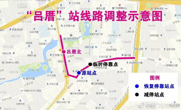 减停施工临时停靠的:“吕厝”站临时停靠点(吕岭路江头邮电局门口处)