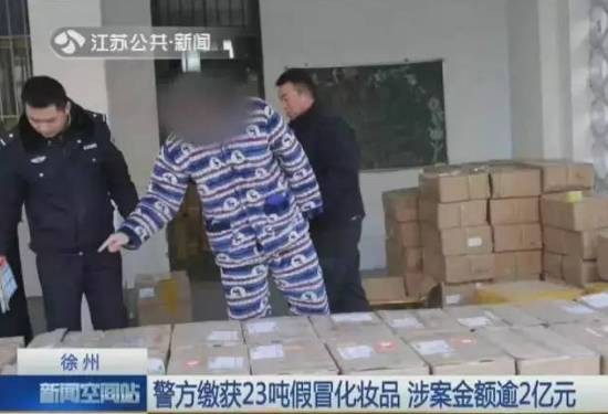 江苏徐州警方15日公布了一起特大制售假冒品牌化装品的案件,查获23吨假冒境外品牌化妆品,涉案金额高达2亿元,共计抓获犯罪嫌疑人47人。