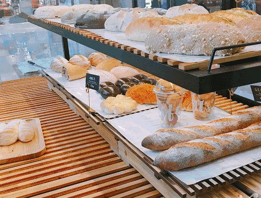 店铺的装修比较小清新,很适合堂食,面包的颜值都挺高,安安静静坐一个下午是个不错的选择。
