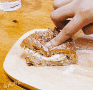 核桃是这款面包的核心,颗颗手切(心疼员工三秒钟),面包外体很酥,核桃碎上面撒了糖粉,嗜甜星人不能错过!另外,个头真的很大!面包“家庭装”,绝对管饱(嗝~)