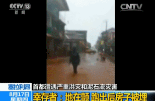 幸存者:大约在14日早上5点45到6点的时候,我在屋里面看到外面的雨下很大,我很担心,所以跑出来了,因为我们住的地方有山,我出来看看当时的情况,结果听到我身后的山上有非常巨大的声响,地还在颤动,石头开始往下掉落,我当时出来的时候,一块滚落的石块几乎砸到我,当我一回头,所有的房子都被泥土掩埋了,山那片的居民都遇难了。