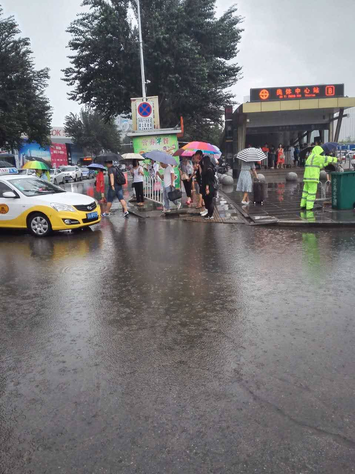8时50分,沈阳地铁二号线奥体中心站B口东北侧有积水,