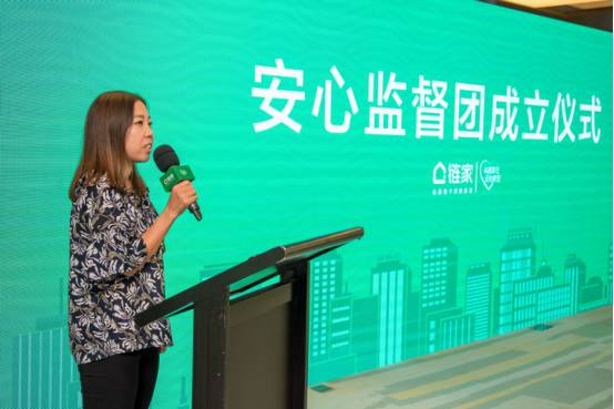在安心监督团成立仪式上,张然女士代表消费者群体发言,她说:“买房子对于我们普通老百姓来讲,可以说是人生中的一件大事,动辄上百万的房产往往需要动用一个家庭毕生的积蓄,所以如何在买房中规避买卖的风险,让买房更安心是我们老百姓最重要的。”