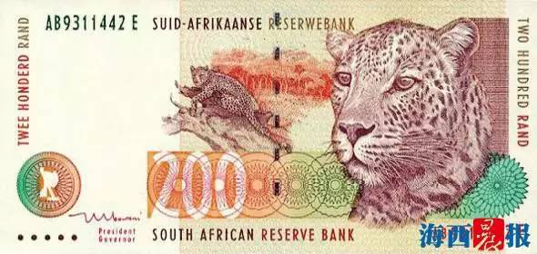 1961年2月14日,南非发行了新货币———南非兰特。南非兰特纸钞上面运用了南非的11种官方语言,纸钞左上角添加了南非国徽,国徽中有一排小字IKEE:XARRA KE,意思是多元民族团结。2005年版南非兰特的纸钞正下方的钻石图案主要是供盲人辨认纸钞用。
