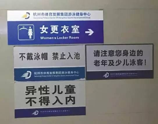 杭州游泳馆女更衣室入口贴着“异性儿童不得入内”。记者 郑亿 摄