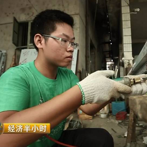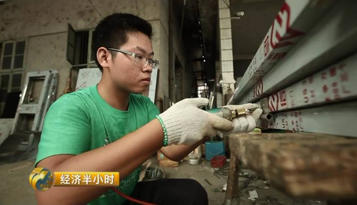 在广东省韶关市乳源县的一个不锈钢门工厂里,刚满18岁的马世云正在打暑期工,他要把一个个小螺丝钉拧进不锈钢防盗门里。