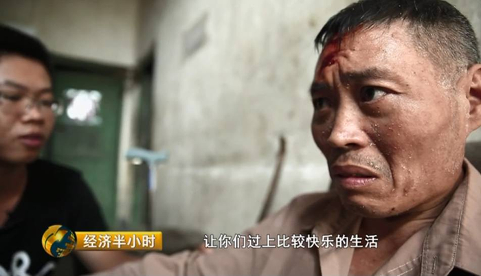 由于动手术治疗的费用高达20万元,马华阳患病9年无钱医治,到今天,四肢几乎已经不能动了。为此马华阳经常摔跤,几天前还在厕所摔得满脸是血。马世云仔细的给爸爸的伤口擦药。