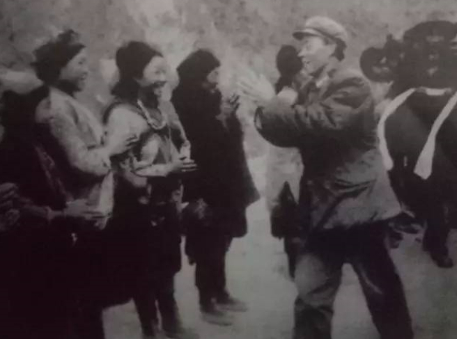 获胜的解放军部队撤离德让宗,当地民众欢送参战将士。前排右一为阴法唐。