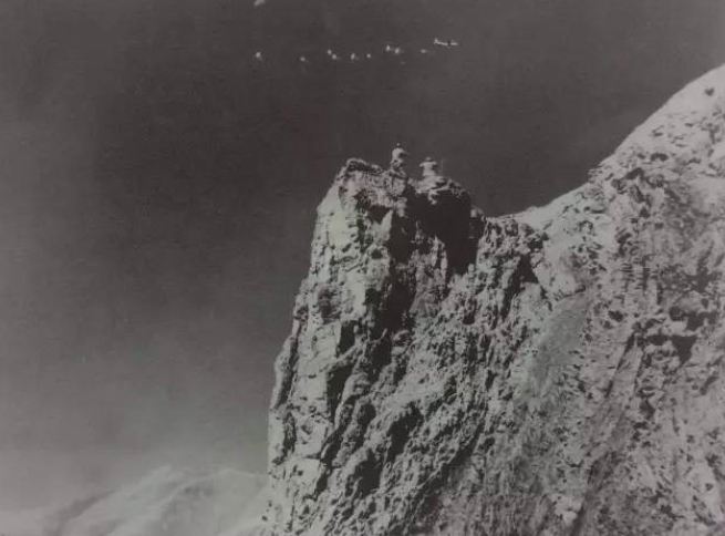 1962年7月,解放军边防战士警惕地监视着入侵我国领空的印度飞机。图中这架飞机正在给入侵我国新疆加勒万河谷的印度军队投掷物资。