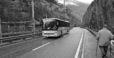 | 图为行驶在瑞士山间的公交车。何农摄/光明图片 |
