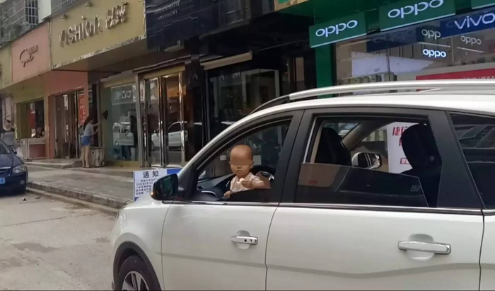 这是什么操作,白色SUV驾驶窗冒出一个小光头,结果……