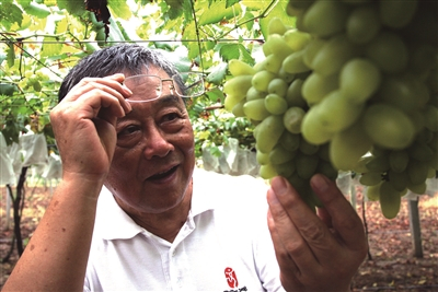 近年来,丁庄村与镇江市农业科学院、省农业科学院等有关高等院校、研究院联合,定期聘请教授、专家为果农上课,传授葡萄栽培新技术,不断提升葡萄品质。此外,今年该镇组织了两批共20人次的“葡二代”赴日本学习先进的种植技术,而疏花疏果就是其中一项。在葡萄坐果时,将顶部的葡萄进行修剪,留下中下部的葡萄。在葡萄的生长期间,每颗葡萄将得到均衡的营养,葡萄成熟时,包括最底部的葡萄都是同样的甜。