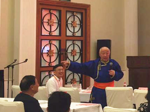蒙古袍同样是与游牧生活相契合的一种发明,一直延续到今天,在发布会现场的蒙古族学者均身着蒙古族服饰。