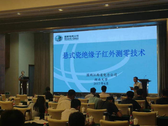 8月10日,由国家电网公司运检部主办,国网北京市电力公司承办的电网设备状态检测新技术会议在北京举行。大会以“探索状态检测技术,助推智能运检发展”为主题,邀请了清华大学、华北电力大学、上海交通大学、西安交通大学、南京大学、重庆大学、湖南大学、中科院电工所、中国中车、北京航天十三所以及国网公司27个省市运检部、检修公司、电科院等单位的共计150余位领导和专家参加。大会关于电网设备状态检测新技术研究与应用工作总体情况的报告,对于湖南大学姚建刚教授团队所研发的高压瓷质绝缘子红外精确测零技术给予了高度评价,明确指出“瓷质绝缘子红外精确测零技术具有较好的技术优势和应用前景,可以推广应用”。