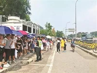 北大校外前来参观的游客排起长龙