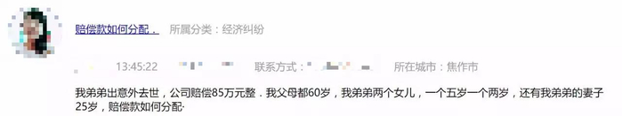 弟弟因意外去世,公司赔偿85万元整。我父母都60岁,我弟弟有两个女儿,一个5岁一个2岁,弟弟的妻子25岁,请问赔偿款如何分配?