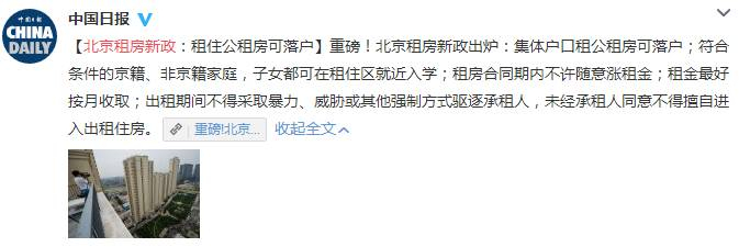 今晚读丨重磅:北京租房新政出炉:集体户口租公租房可落户了!