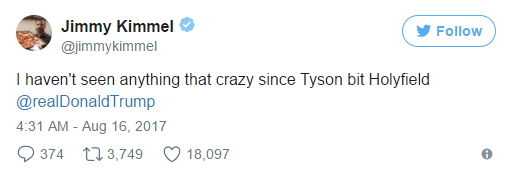 自从泰森咬了一口霍利菲尔德耳朵后,我再没见过这么疯狂的事了。