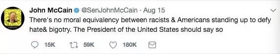 15日,特朗普就此事件发言时,指责抗议者和白人至上主义者及新纳粹分子一样暴力,都有责任。