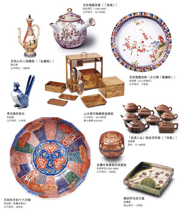 展览分为三个部分,第一展区“茶之汤与怀石器物”以茶会使用的陶瓷器皿及茶室空间为展示主轴。第二展区“宴会器物”则展出日本江户时代宴客时的豪华陶瓷酒器与食器,藉以一窥日本自古以来配合时令节气、仪式庆典所举办的各种款待酒宴样貌。第三展区“煎茶之器皿”,主要呈现17至19世纪,因融入中国文人雅趣而诞生独特的“煎茶道”与日式煎茶用具。