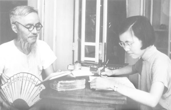 1956年7月,丰子恺与幼女丰一吟在日月楼合译柯罗连科小说