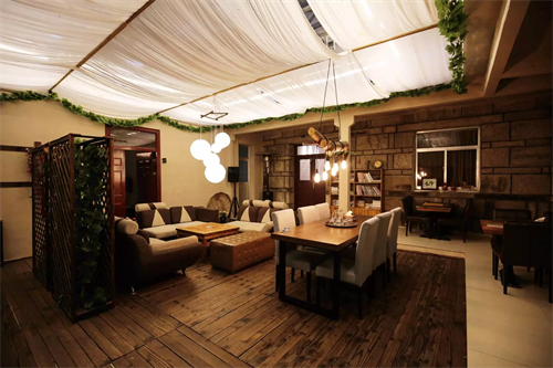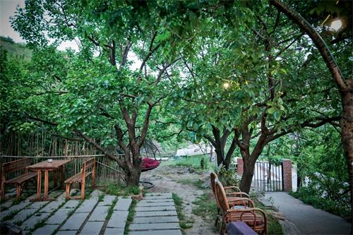 说干就干。大库七号是座老农家院,设施都十分老旧,采光 、防水 、饮水 、包括厕所都需要改造。从砌房、修葺,到除草到做院子,滕川几乎亲历亲为,整个过程突出乡村性和主人的情怀。给民宿注入“灵魂”——民宿经营者的“人情味”,使民宿不属于简单的住宿产品,充分体现“本土家庭文化特色”,简单质朴但是温暖。不管是自制的嘎吱响的地板,还是树干做的灯,每一处都带有着手工的余温,安静地让人感受到生活中细枝末节的暖意。房间内墙体也没有过多的粉刷,保留着固有的水泥肌理,内部的其他摆设并不简陋而且带有现代的温馨,透着细微的精致。整体给人时光倒流的穿越感。