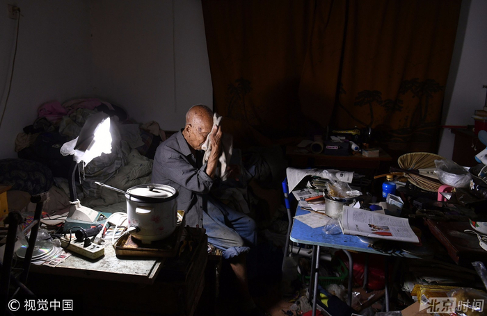 京城8月的天气仍有些炎热,17日下午3点,一位107岁的老人,推着装了一摞摞鞋垫的小车,缓缓来到传媒大学西门对面的墙跟下,在一家门面前将小车上的塑料布揭开,拿出鞋垫,等待顾客上门。