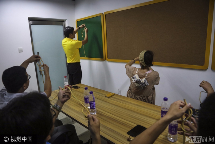 2017年8月1日,北京,老队员给志愿者们进行培训。