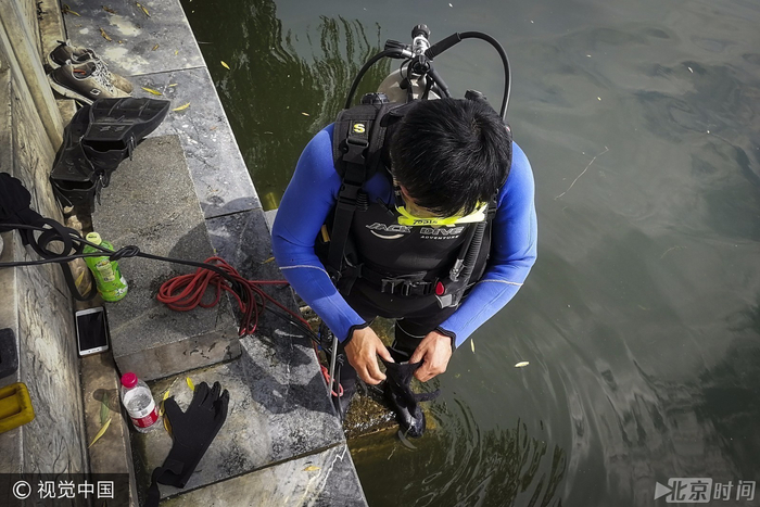 2017年7月25日,天华在什刹海准备下潜打捞。当谈到水下作业的感受时,天华很淡然,“没时间想那么多,下水要非常专注,救援的工作都是这样,要确定到场的队员保持平稳的状态。”天华介绍,不管是哪种救援工作,都需要队员有很好的心理素质和及时的心理疏导,有的队员训练得很好,真正参与了一次直面死者的场景,心理就崩溃了,之后就再也做不了救援的工作了。