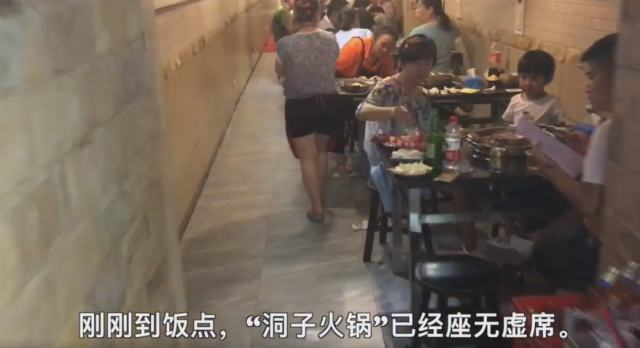 进入店内,别有洞天:约三米宽、两米高的通道纵横交错,里面摆满座椅板凳,不少市民正津津有味涮着火锅。