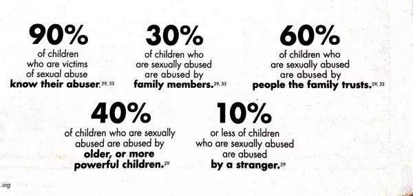 美国一项统计显示:30%性侵来自家人,60%来自父母最最信任的人