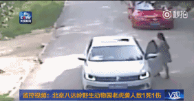 那天下午在北京八达岭野生动物园内,一家四口自驾游,包括三大人一孩子。行驶至猛兽区东北虎园里,车内一名女子下了车,被蹿出的老虎叼走。这名女子的母亲立刻下车营救,结果被另一只老虎当场咬死并拖走。