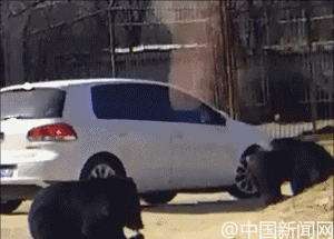就在同一天,这个动物园内还发生了另一件事:一小轿车在黑熊区打开车窗,遭多只黑熊围堵,熊爪伸进车内。幸好动物园管理员及时出现,才避免发生意外。