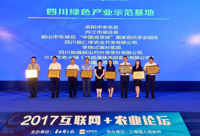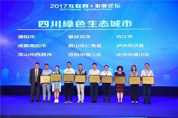 2017年互联网+农业论坛上,“四川绿色生态城市”奖项颁出,四川9个市(县)揽获荣誉。